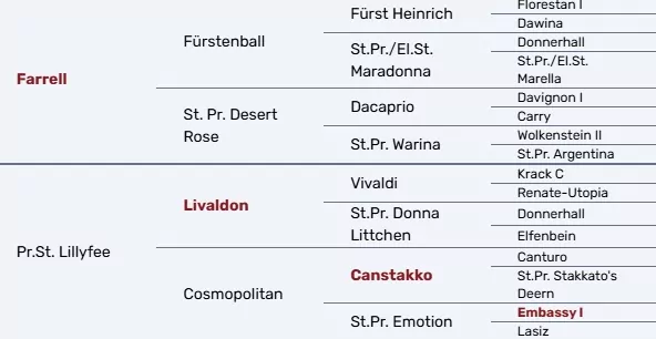 Również trzykrotna zwyciężczyni CCI4* Mighty Spring (Heike Jahncke) i Aconda (CCI**/Frank Ostholt) wywodzą się z tej linii.